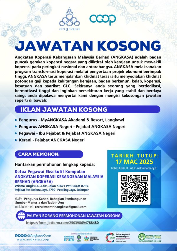 Iklan Kini Jawatan Kosong Angkatan Koperasi Kebangsaan Malaysia Berhad (ANGKASA) Klik Jawatan Disini Like serta Ikut Facebook Kami, follow Chanel WhatsApp Jawatan Kosong & Telegram Portal SPA9 untuk capaian pantas kekosongan jawatan daripada kami sekarang.