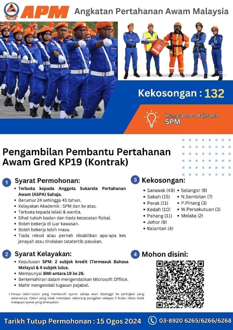 Iklan Kini Jawatan Kosong Angkatan Pertahanan Awam (APM) Like serta Ikut Facebook Kami, follow Chanel WhatsApp Jawatan Kosong & Telegram Portal SPA9 untuk capaian pantas kekosongan jawatan daripada kami sekarang. Klik Jawatan Disini