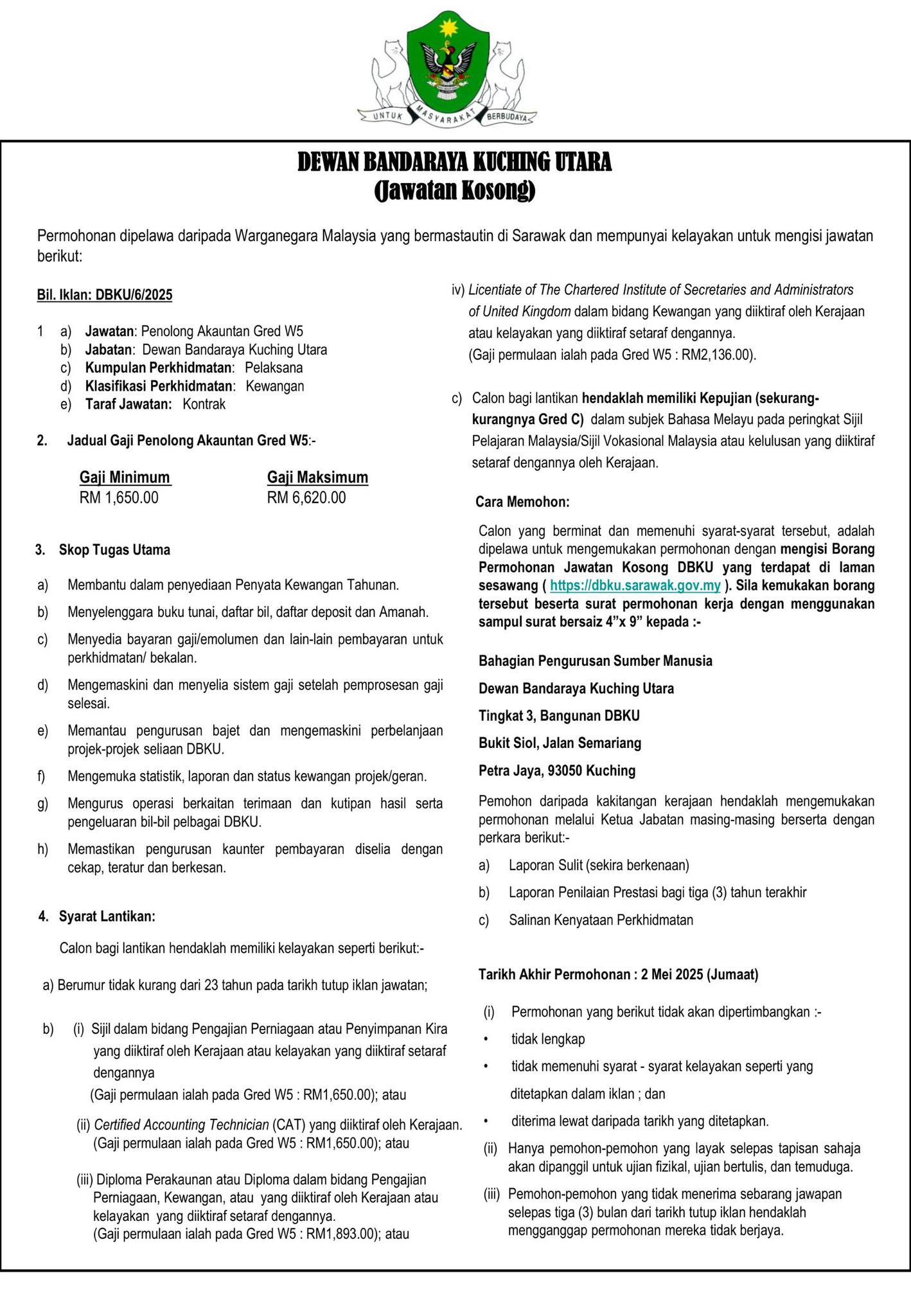 Iklan Kini Jawatan Kosong Dewan Bandaraya Kuching Utara (DBKU) Klik Jawatan Disini Like serta Ikut Facebook Kami, follow Chanel WhatsApp Jawatan Kosong & Telegram Portal SPA9 untuk capaian pantas kekosongan jawatan daripada kami sekarang.
