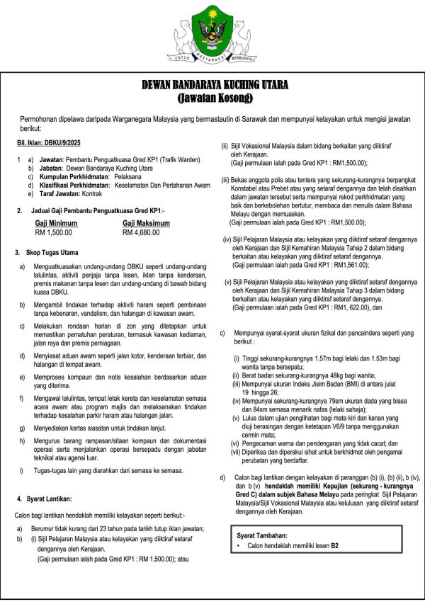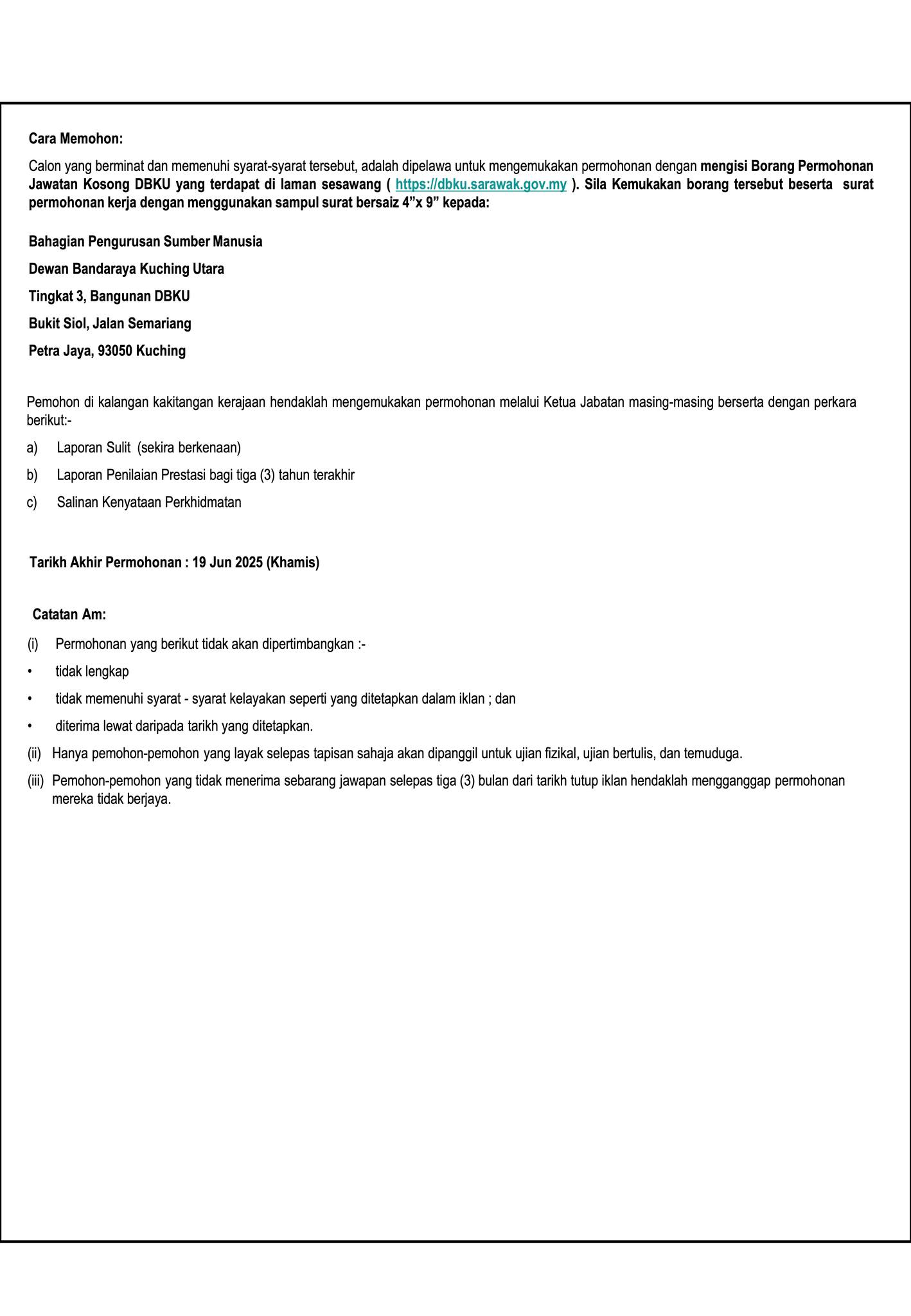 Iklan Kini Jawatan Kosong Dewan Bandaraya Kuching Utara (DBKU)