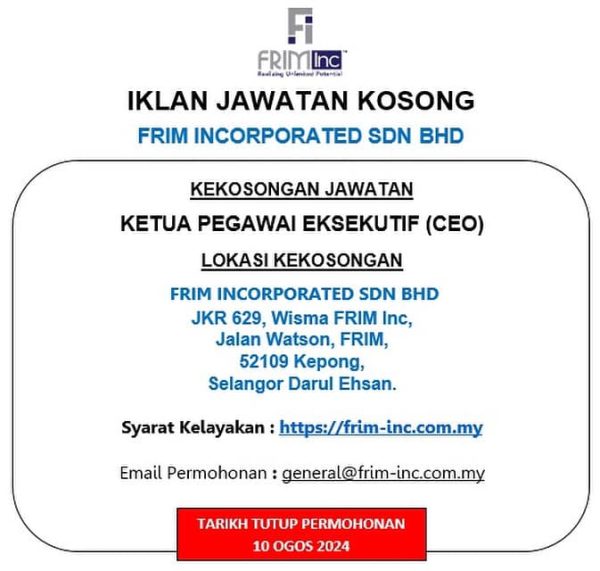 Iklan Kini Jawatan Kosong FRIM Incorporated Sdn Bhd Like serta Ikut Facebook Kami, follow Chanel WhatsApp Jawatan Kosong & Telegram Portal SPA9 untuk capaian pantas kekosongan jawatan daripada kami sekarang. Klik Jawatan Disini
