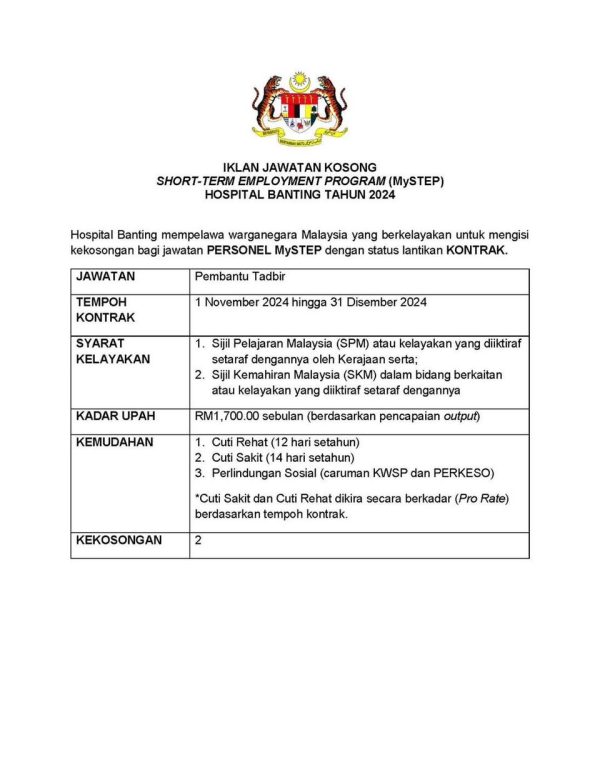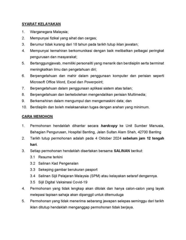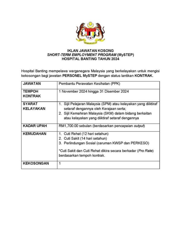 Iklan Kini Jawatan Kosong Hospital Banting Like serta Ikut Facebook Kami, follow Chanel WhatsApp Jawatan Kosong & Telegram Portal SPA9 untuk capaian pantas kekosongan jawatan daripada kami sekarang.