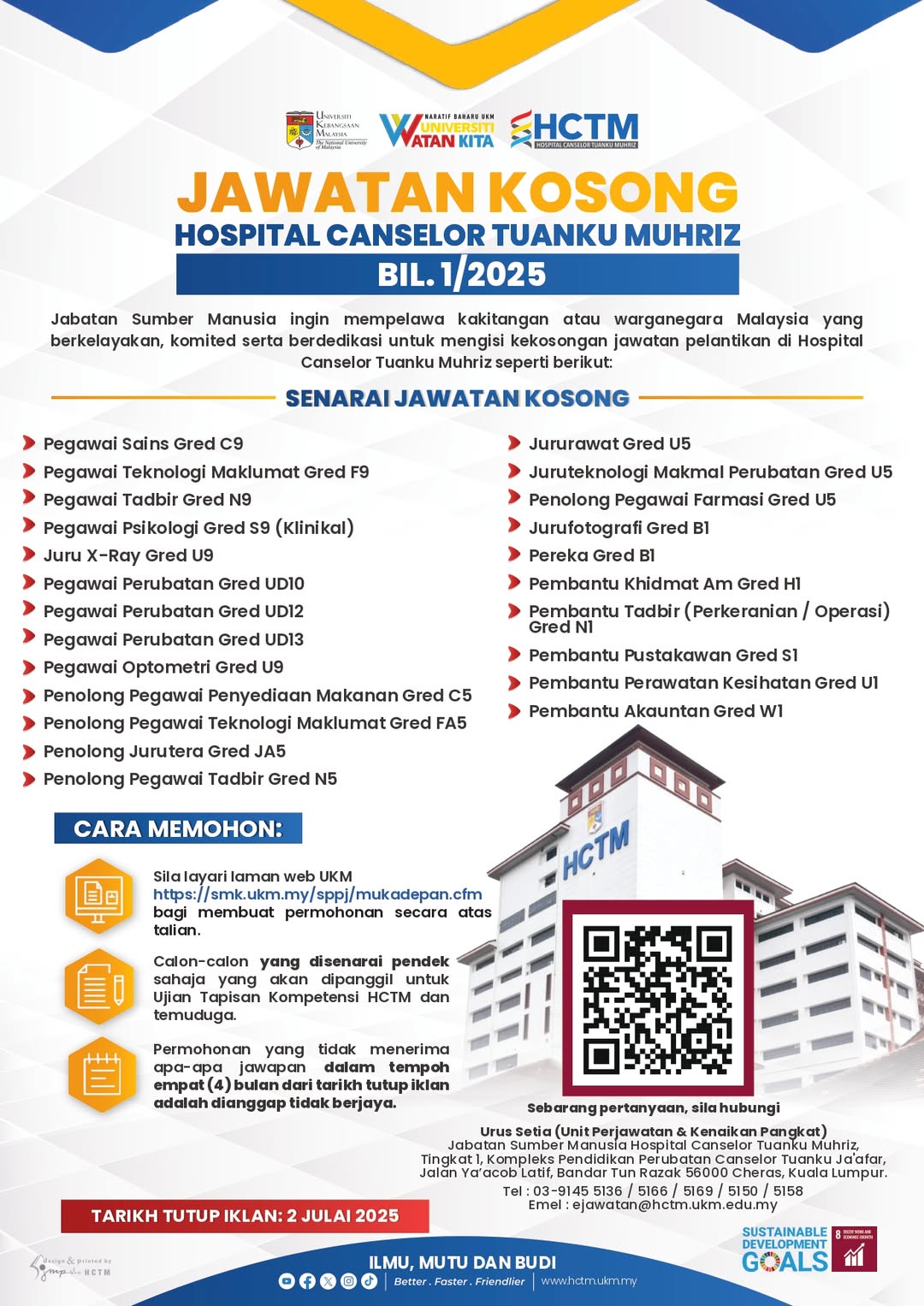 Iklan Kini Jawatan Kosong Hospital Canselor Tuanku Muhriz (HCTM) UKM Like serta Ikut Facebook Kami, follow Chanel WhatsApp Jawatan Kosong & Telegram Portal SPA9 untuk capaian pantas kekosongan jawatan daripada kami sekarang. Klik Jawatan Disini