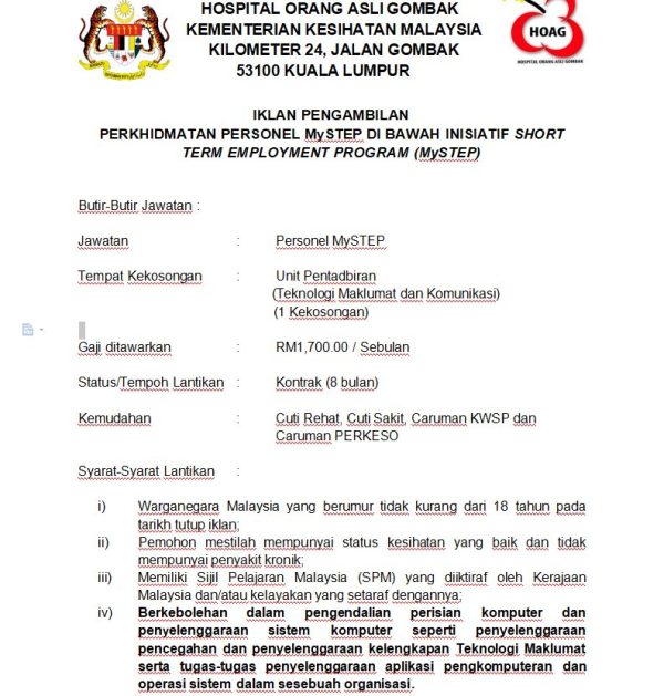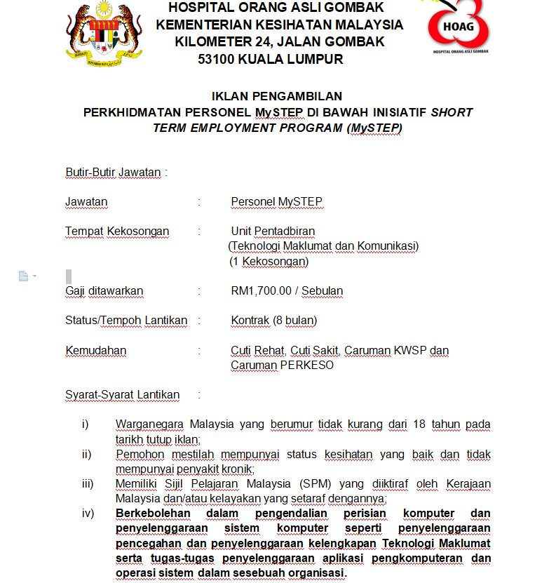 Iklan Kini Jawatan Kosong Hospital Orang Asli Gombak Klik Jawatan Disini Like serta Ikut Facebook Kami, follow Chanel WhatsApp Jawatan Kosong & Telegram Portal SPA9 untuk capaian pantas kekosongan jawatan daripada kami sekarang.