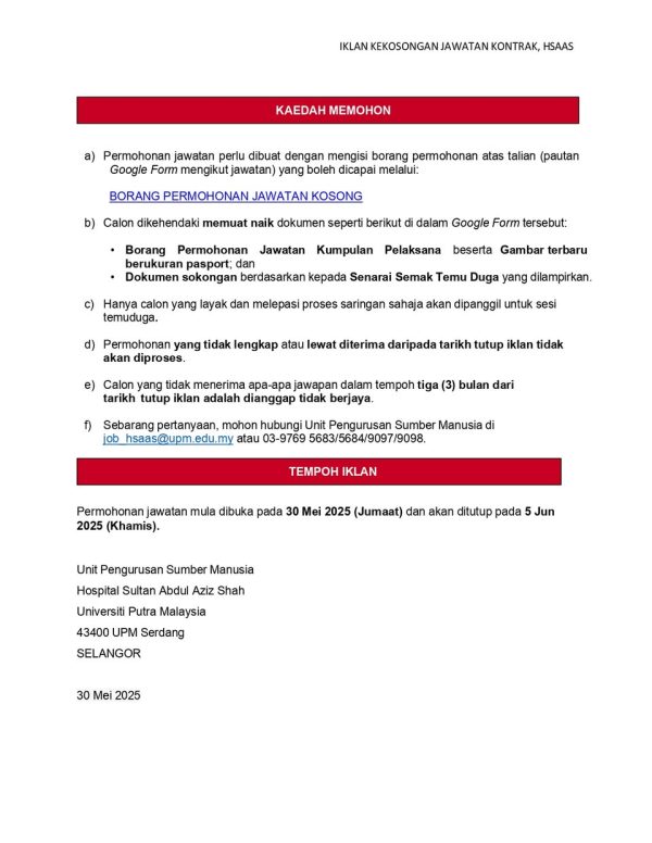Iklan Kini Jawatan Kosong Hospital Sultan Abdul Aziz Shah (HSAAS) Klik Jawatan Disini Like serta Ikut Facebook Kami, follow Chanel WhatsApp Jawatan Kosong & Telegram Portal SPA9 untuk capaian pantas kekosongan jawatan daripada kami sekarang.