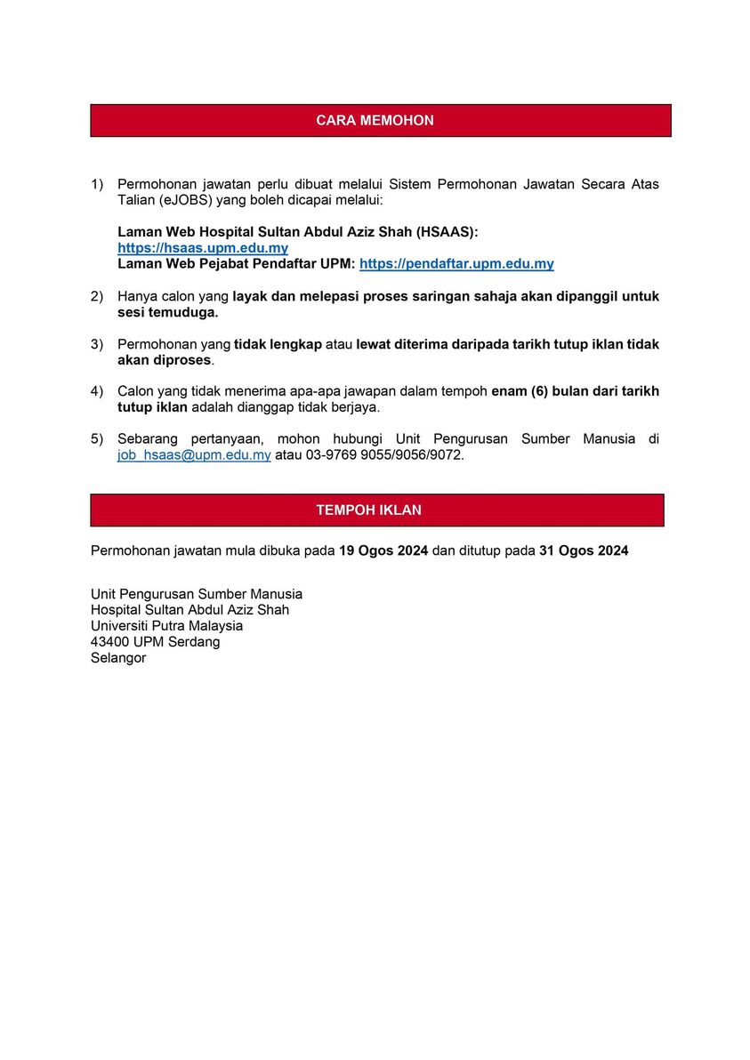 Iklan Kini Jawatan Kosong Hospital Sultan Abdul Aziz Shah (HSAAS) Klik Jawatan Disini Like serta Ikut Facebook Kami, follow Chanel WhatsApp Jawatan Kosong & Telegram Portal SPA9 untuk capaian pantas kekosongan jawatan daripada kami sekarang.