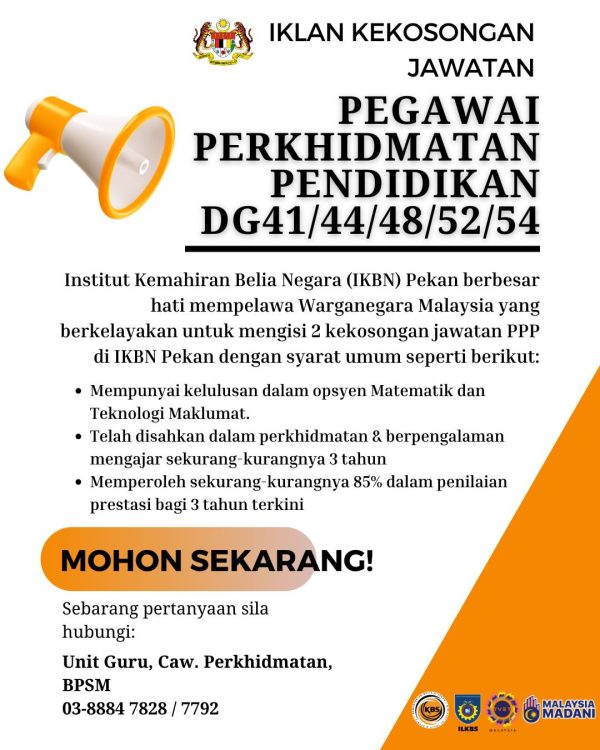 Iklan Kini Jawatan Kosong Institut Kemahiran Belia Negara (IKBN) Like serta Ikut Facebook Kami, follow Chanel WhatsApp Jawatan Kosong & Telegram Portal SPA9 untuk capaian pantas kekosongan jawatan daripada kami sekarang. Klik Jawatan Disini