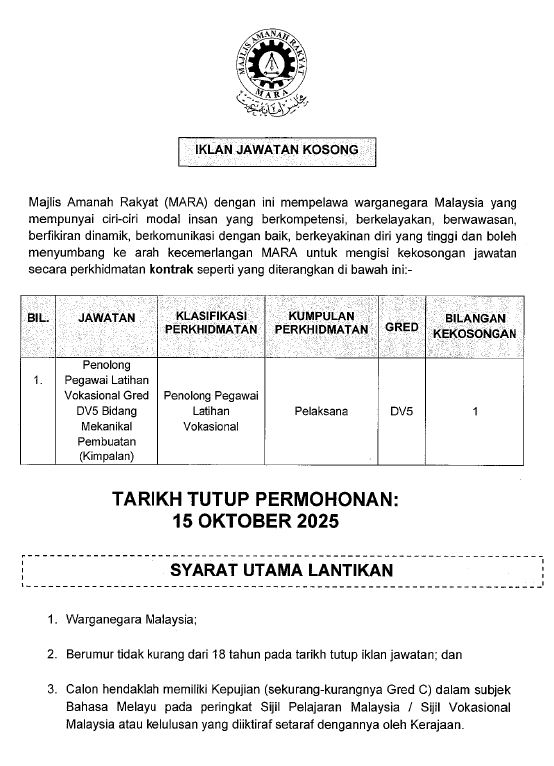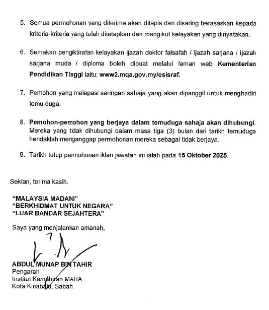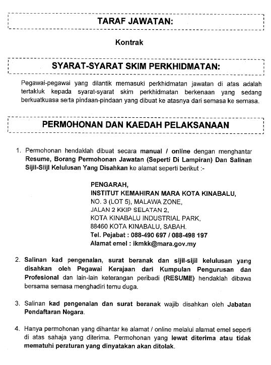 Iklan Kini Jawatan Kosong Institut Kemahiran Mara (IKM) Like serta Ikut Facebook Kami, follow Chanel WhatsApp Jawatan Kosong & Telegram Portal SPA9 untuk capaian pantas kekosongan jawatan daripada kami sekarang.