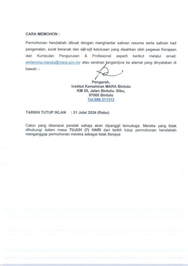 Iklan Kini Jawatan Kosong Institut Kemahiran Mara (IKM) Bintulu Like serta Ikut Facebook Kami, follow Chanel WhatsApp Jawatan Kosong & Telegram Portal SPA9 untuk capaian pantas kekosongan jawatan daripada kami sekarang. Klik Jawatan Disini