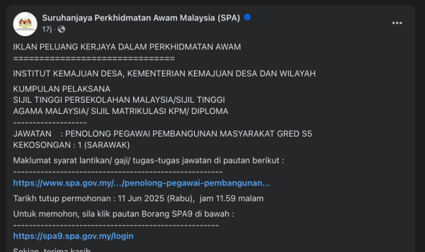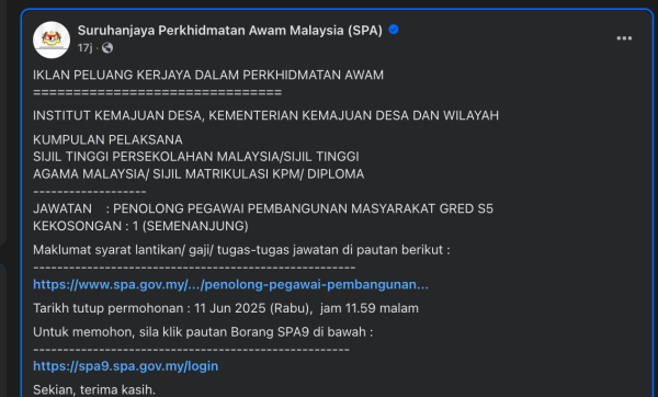 Iklan Kini Jawatan Kosong Institut Kemajuan Desa (INFRA) Klik Jawatan Disini Like serta Ikut Facebook Kami, follow Chanel WhatsApp Jawatan Kosong & Telegram Portal SPA9 untuk capaian pantas kekosongan jawatan daripada kami sekarang.