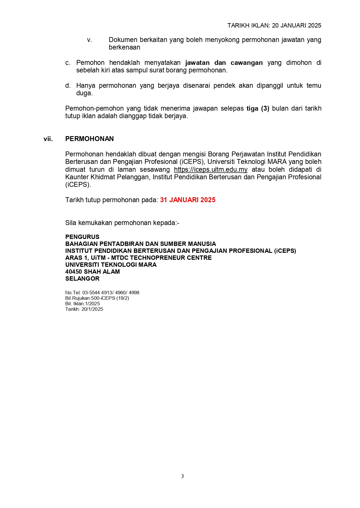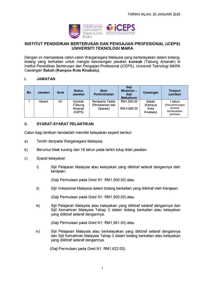 Iklan Kini Jawatan Kosong Institut Pendidikan Berterusan dan Pengajian Profesional (iCEPS) Klik Iklan Jawatan Like serta Ikut Facebook Kami, follow Chanel WhatsApp Jawatan Kosong & Telegram Portal SPA9 untuk capaian pantas kekosongan jawatan daripada kami sekarang.