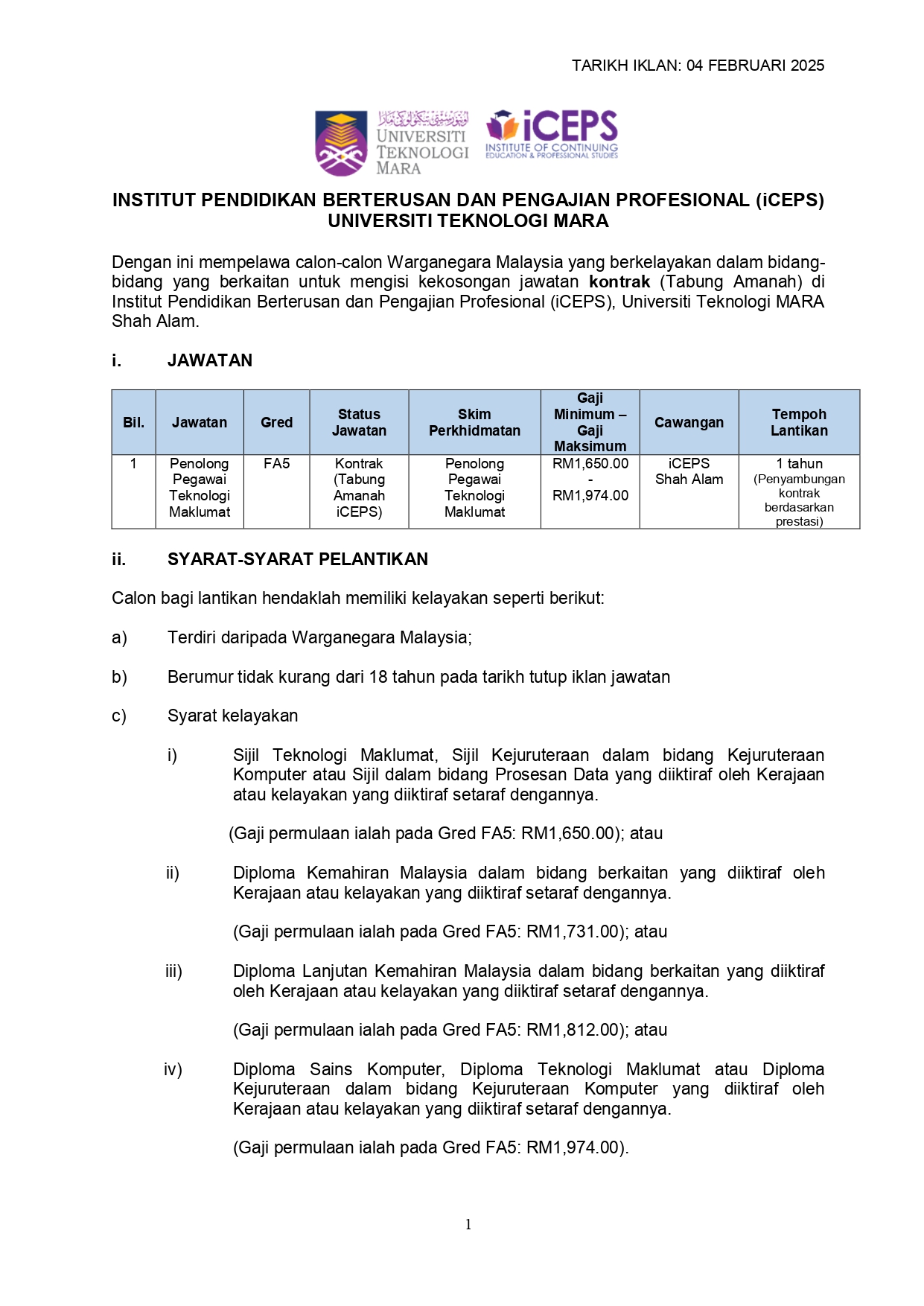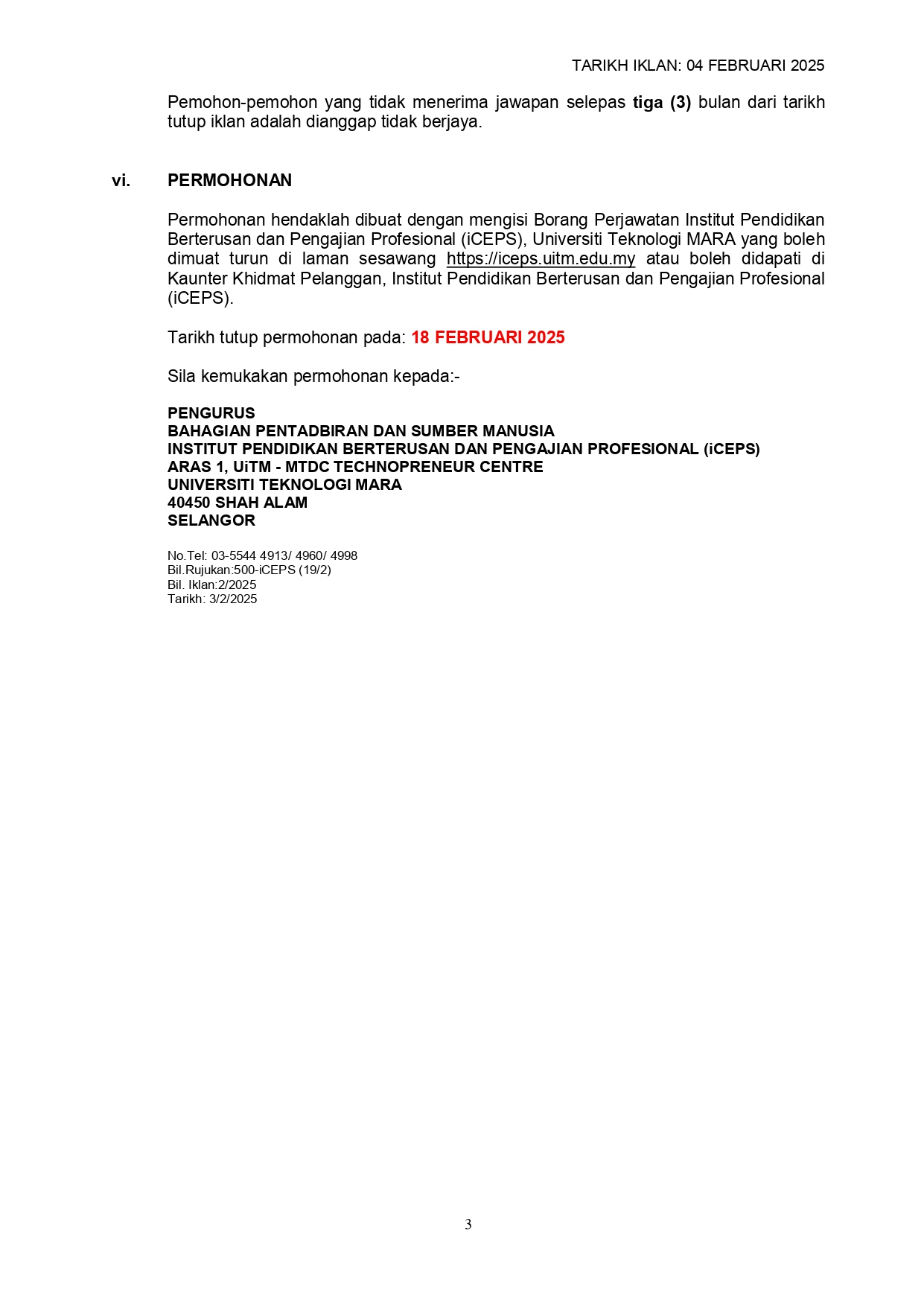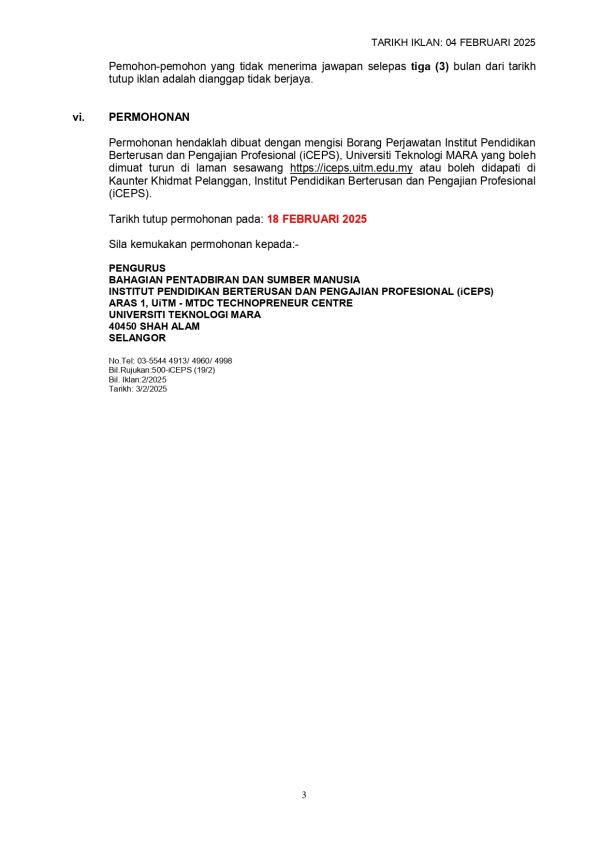 Iklan Kini Jawatan Kosong Institut Pendidikan Berterusan dan Pengajian Profesional (iCEPS) Klik Iklan Jawatan Like serta Ikut Facebook Kami, follow Chanel WhatsApp Jawatan Kosong & Telegram Portal SPA9 untuk capaian pantas kekosongan jawatan daripada kami sekarang.