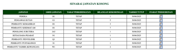 Iklan Kini Jawatan Kosong Institut Penyelidikan Perhutanan Malaysia (FRIM) Like serta Ikut Facebook Kami, follow Chanel WhatsApp Jawatan Kosong & Telegram Portal SPA9 untuk capaian pantas kekosongan jawatan daripada kami sekarang. Klik Jawatan Disini