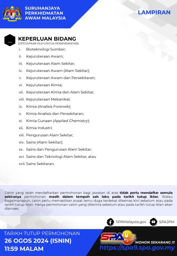 Like serta Ikut Facebook Kami, follow Chanel WhatsApp Jawatan Kosong & Telegram Portal SPA9 untuk capaian pantas kekosongan jawatan daripada kami sekarang.