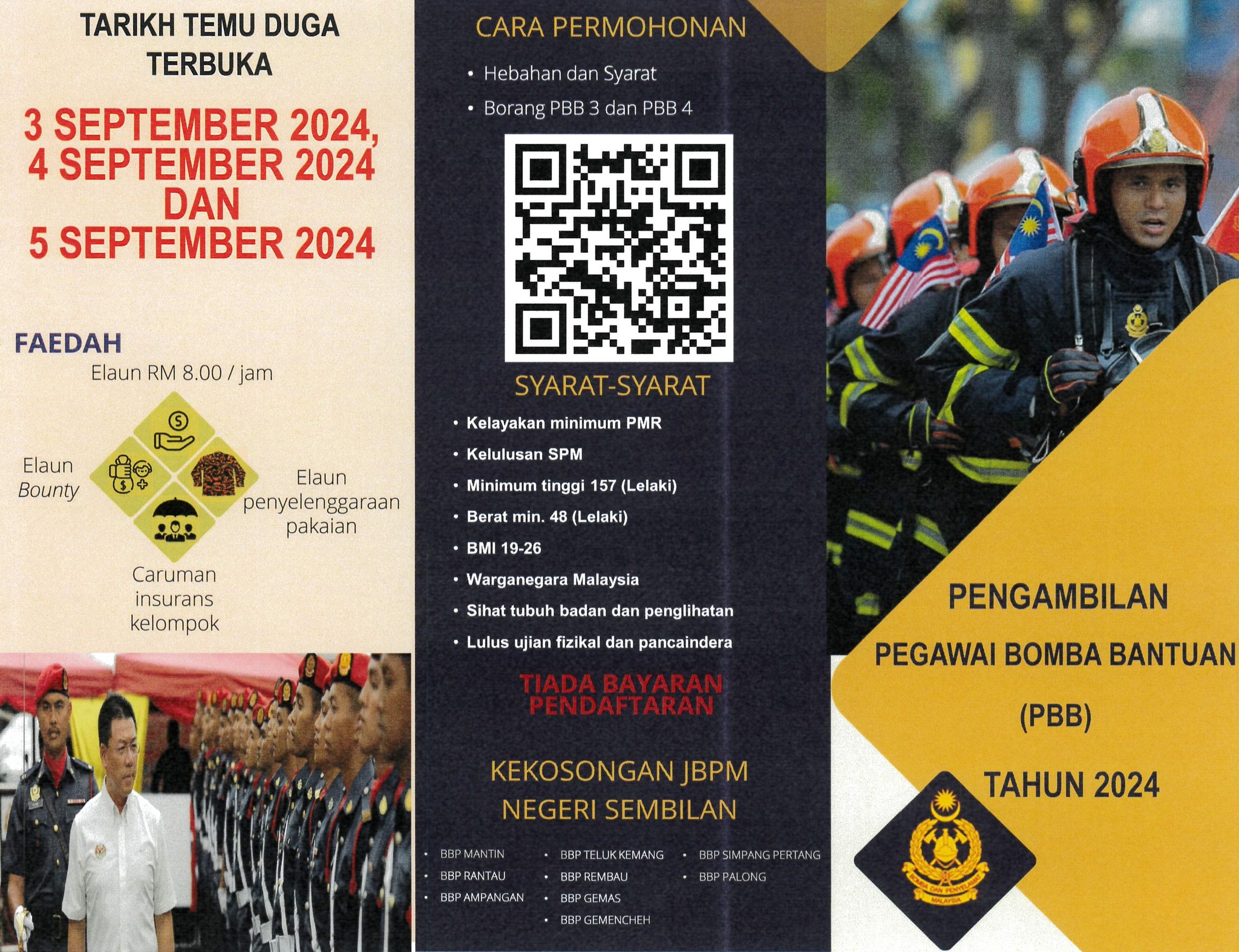 Iklan Kini Jawatan Kosong Jabatan Bomba Dan Penyelamat Malaysia (JBPM) Like serta Ikut Facebook Kami, follow Chanel WhatsApp Jawatan Kosong & Telegram Portal SPA9 untuk capaian pantas kekosongan jawatan daripada kami sekarang. Klik Jawatan Disini