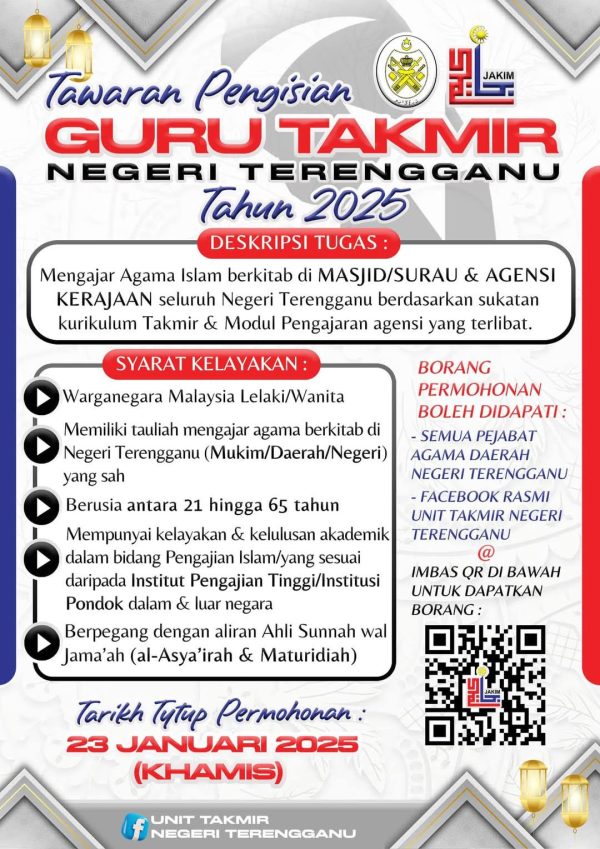 Iklan Kini Jawatan Kosong Jabatan Hal Ehwal Agama Islam Negeri Terengganu Like serta Ikut Facebook Kami, follow Chanel WhatsApp Jawatan Kosong & Telegram Portal SPA9 untuk capaian pantas kekosongan jawatan daripada kami sekarang.
