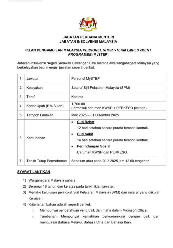 Iklan Kini Jawatan Kosong Jabatan Insolvensi Malaysia Like serta Ikut Facebook Kami, follow Chanel WhatsApp Jawatan Kosong & Telegram Portal SPA9 untuk capaian pantas kekosongan jawatan daripada kami sekarang.