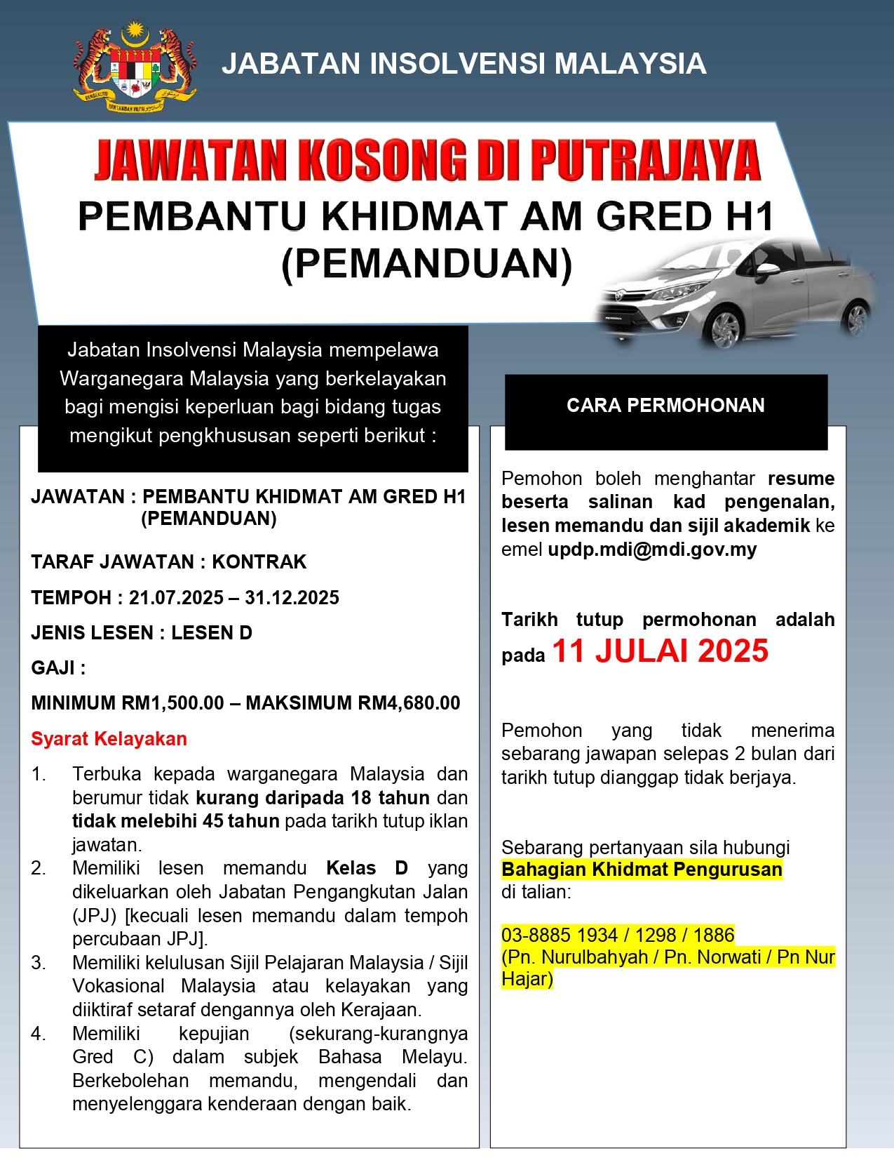Iklan Kini Jawatan Kosong Jabatan Insolvensi Malaysia Like serta Ikut Facebook Kami, follow Chanel WhatsApp Jawatan Kosong & Telegram Portal SPA9 untuk capaian pantas kekosongan jawatan daripada kami sekarang. Klik Jawatan Disini