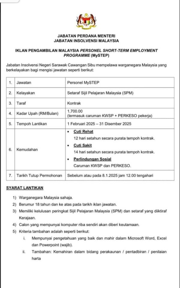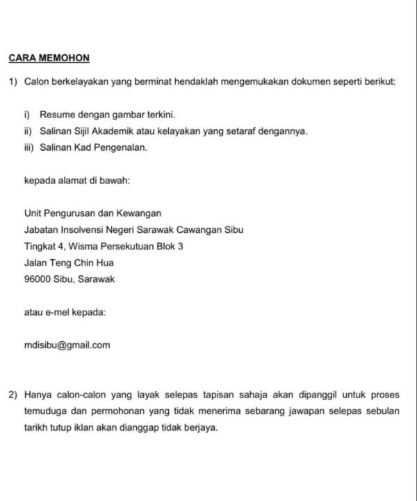 Iklan Kini Jawatan Kosong Jabatan Insolvensi Malaysia