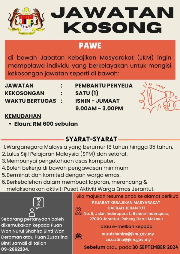 Iklan Kini Jawatan Kosong Jabatan Kebajikan Masyarakat Negeri Terengganu Like serta Ikut Facebook Kami, follow Chanel WhatsApp Jawatan Kosong & Telegram Portal SPA9 untuk capaian pantas kekosongan jawatan daripada kami sekarang.