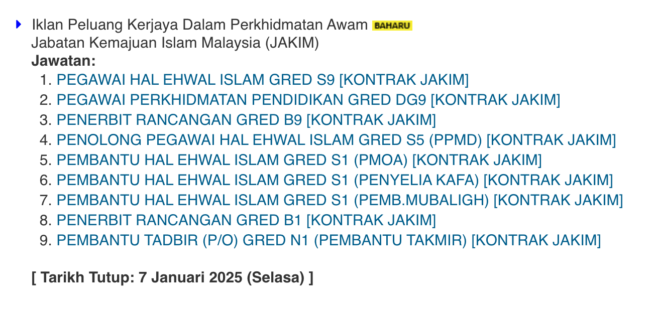 Iklan Kini Jawatan Kosong Jabatan Kemajuan Islam Malaysia (JAKIM) Like serta Ikut Facebook Kami, follow Chanel WhatsApp Jawatan Kosong & Telegram Portal SPA9 untuk capaian pantas kekosongan jawatan daripada kami sekarang.