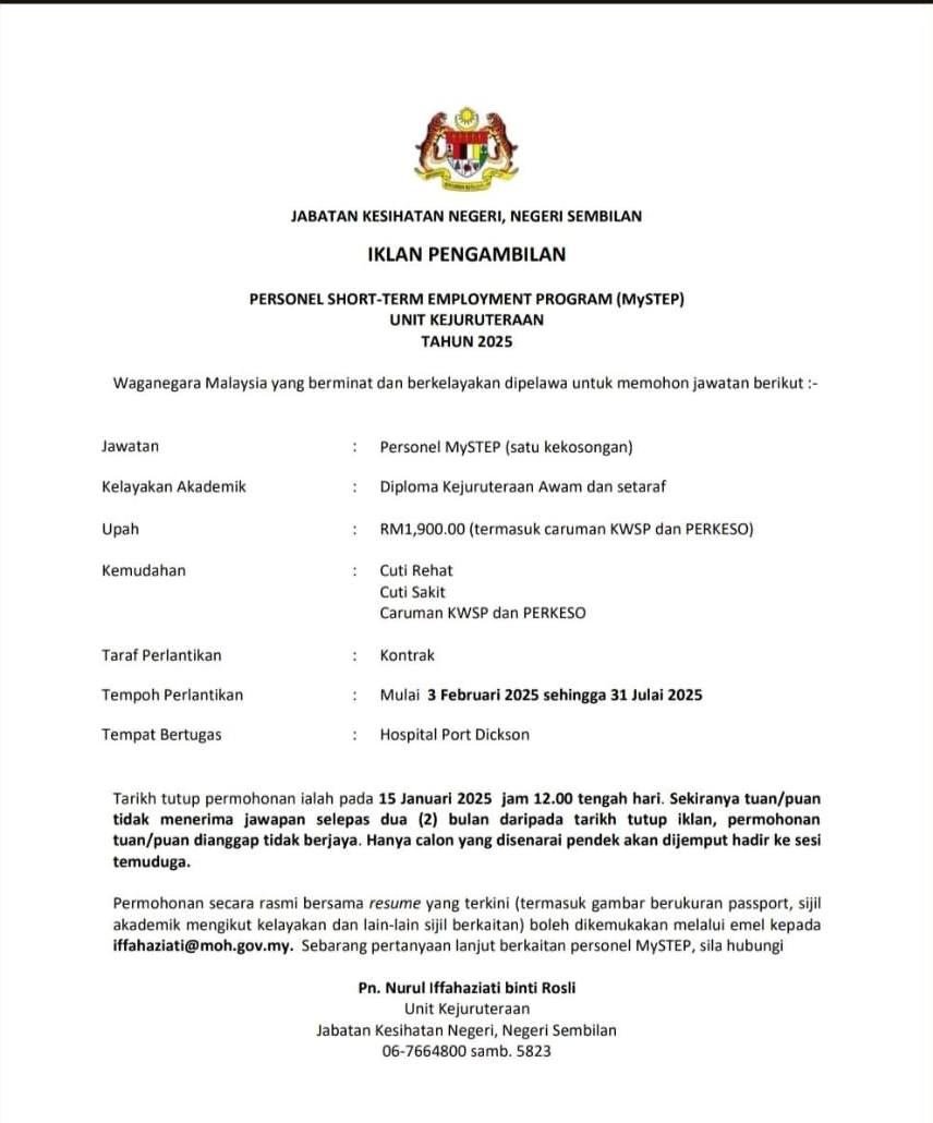 Iklan Kini Jawatan Kosong Jabatan Kesihatan Negeri, Negeri Sembilan Klik Iklan Jawatan Like serta Ikut Facebook Kami, follow Chanel WhatsApp Jawatan Kosong & Telegram Portal SPA9 untuk capaian pantas kekosongan jawatan daripada kami sekarang.