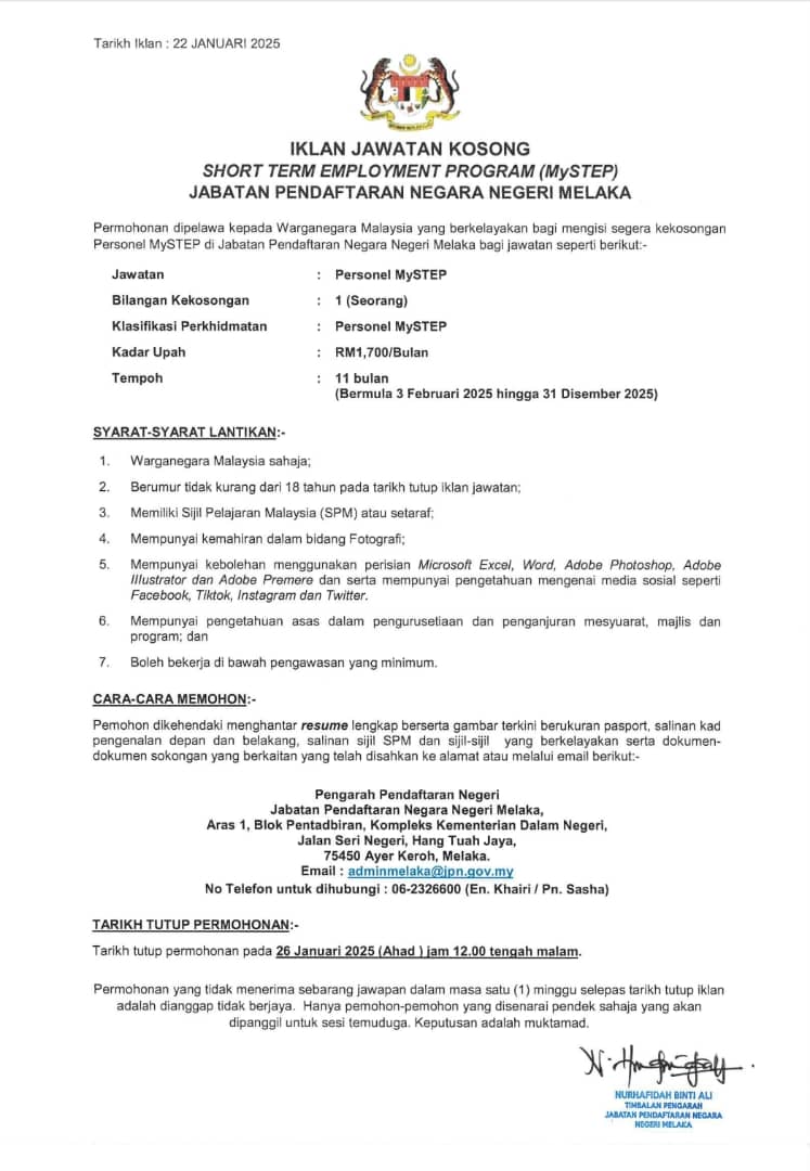 Iklan Kini Jawatan Kosong Jabatan Pendaftaran Negara (JPN) Like serta Ikut Facebook Kami, follow Chanel WhatsApp Jawatan Kosong & Telegram Portal SPA9 untuk capaian pantas kekosongan jawatan daripada kami sekarang. Klik Iklan Jawatan