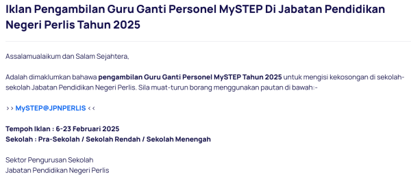 Iklan Kini Jawatan Kosong Jabatan Pendidikan Negeri Perlis Like serta Ikut Facebook Kami, follow Chanel WhatsApp Jawatan Kosong & Telegram Portal SPA9 untuk capaian pantas kekosongan jawatan daripada kami sekarang. Klik Jawatan Disini