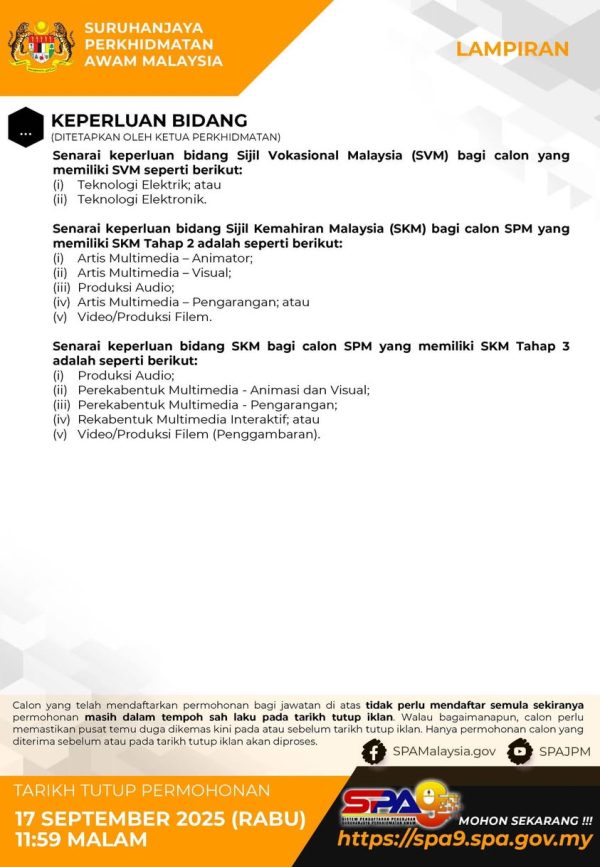 Iklan Kini Jawatan Kosong Jabatan Penerangan Malaysia Like serta Ikut Facebook Kami, follow Chanel WhatsApp Jawatan Kosong & Telegram Portal SPA9 untuk capaian pantas kekosongan jawatan daripada kami sekarang. Klik Iklan Disini