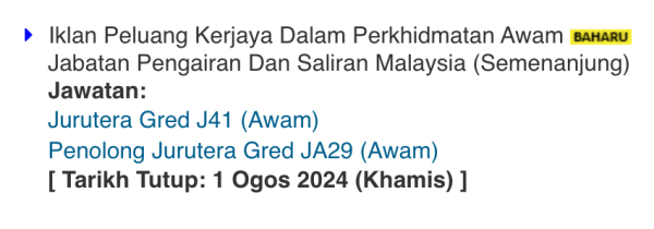Iklan Kini Jawatan Kosong Jabatan Pengairan Dan Saliran