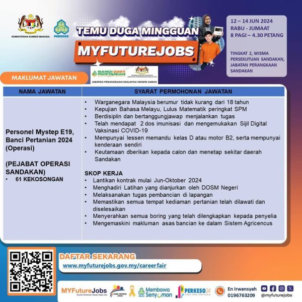 Jangan lepaskan peluang ini untuk menjadi sebahagian daripada Jabatan Perangkaan Malaysia Negeri Sabah. Kami menanti permohonan anda. Semoga berjaya!