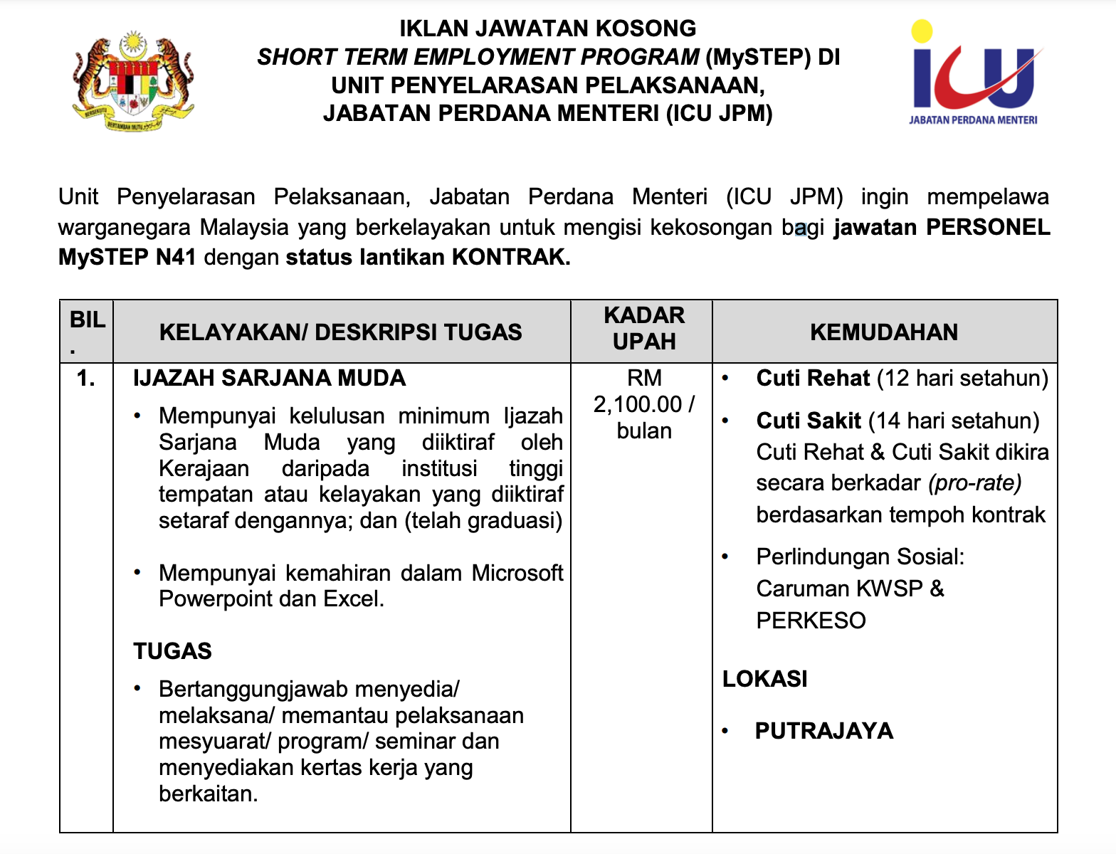Iklan Kini Jawatan Kosong Jabatan Perdana Menteri (JPM) Like serta Ikut Facebook Kami, follow Chanel WhatsApp Jawatan Kosong & Telegram Portal SPA9 untuk capaian pantas kekosongan jawatan daripada kami sekarang. Klik Iklan Jawatan