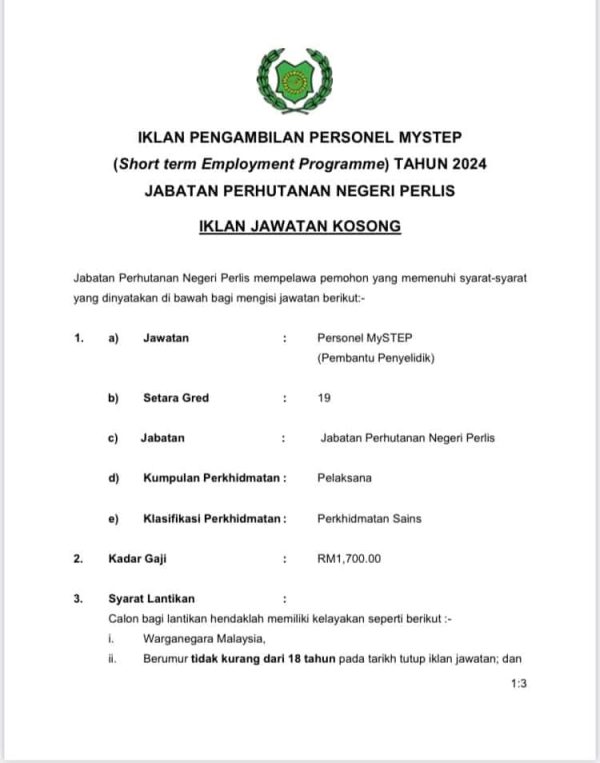Iklan Kini Jawatan Kosong Jabatan Perhutanan Negeri Perlis Like serta Ikut Facebook Kami, follow Chanel WhatsApp Jawatan Kosong & Telegram Portal SPA9 untuk capaian pantas kekosongan jawatan daripada kami sekarang.