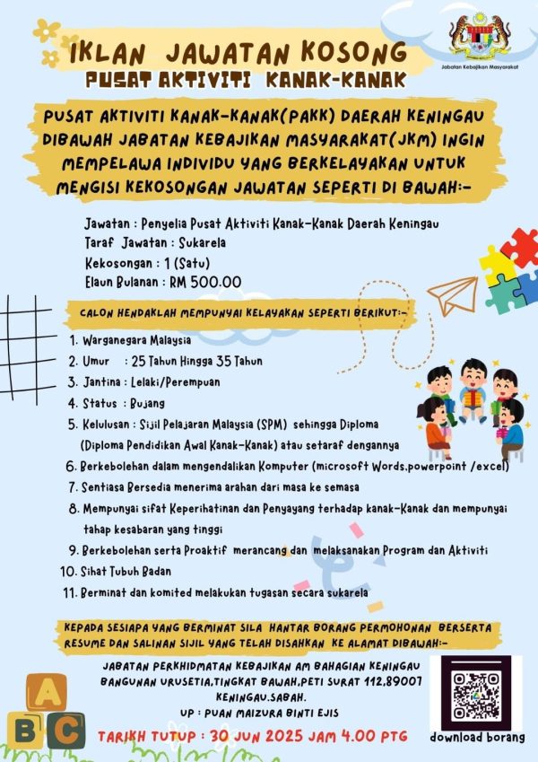 Iklan Kini Jawatan Kosong Jabatan Perkhidmatan Kebajikan Am Like serta Ikut Facebook Kami, follow Chanel WhatsApp Jawatan Kosong & Telegram Portal SPA9 untuk capaian pantas kekosongan jawatan daripada kami sekarang. Klik Jawatan Disini
