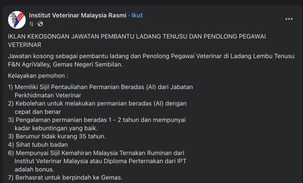Iklan Kini Jawatan Kosong Jabatan Perkhidmatan Veterinar Like serta Ikut Facebook Kami, follow Chanel WhatsApp Jawatan Kosong & Telegram Portal SPA9 untuk capaian pantas kekosongan jawatan daripada kami sekarang. Klik Iklan Jawatan
