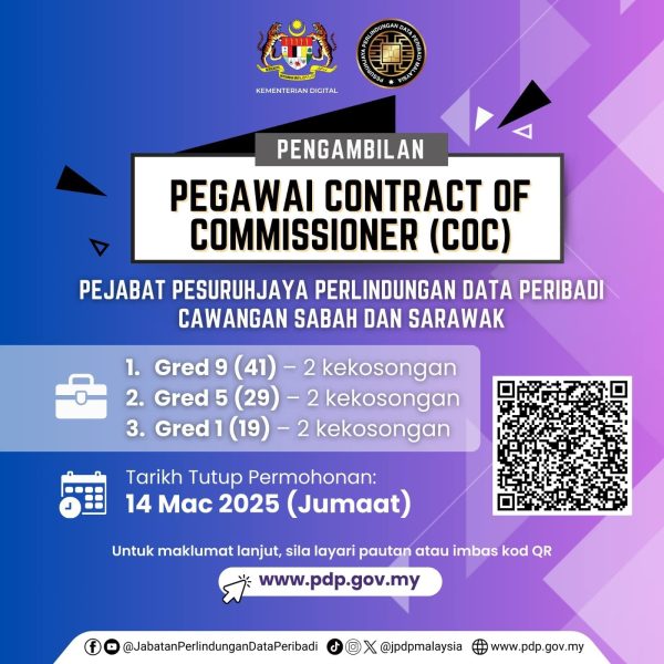 Iklan Kini Jawatan Kosong Jabatan Perlindungan Data Peribadi Malaysia Like serta Ikut Facebook Kami, follow Chanel WhatsApp Jawatan Kosong & Telegram Portal SPA9 untuk capaian pantas kekosongan jawatan daripada kami sekarang. Klik Jawatan Disini