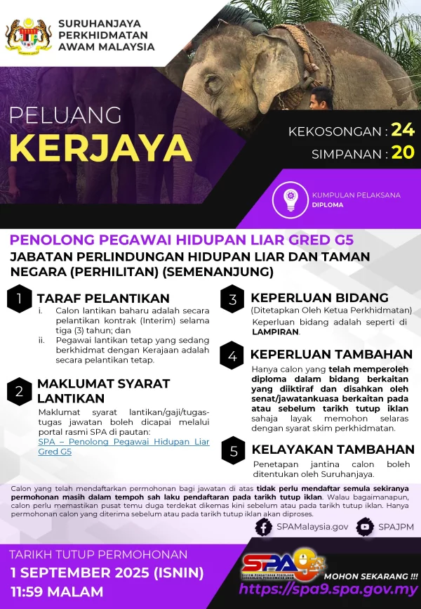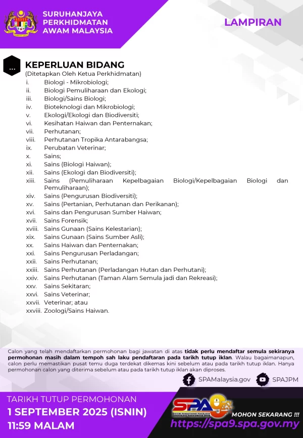 Iklan Kini Jawatan Kosong Jabatan Perlindungan Hidupan Liar Dan Taman Negara (Perhilitan) Klik Iklan Disini Like serta Ikut Facebook Kami, follow Chanel WhatsApp Jawatan Kosong & Telegram Portal SPA9 untuk capaian pantas kekosongan jawatan daripada kami sekarang.