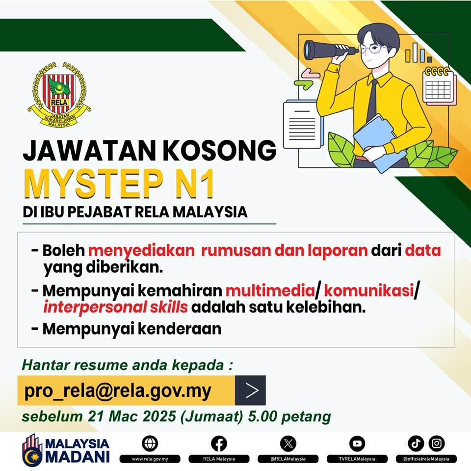 Iklan KIni Jawatan Kosong Jabatan Sukarelawan Malaysia (RELA) Like serta Ikut Facebook Kami, follow Chanel WhatsApp Jawatan Kosong & Telegram Portal SPA9 untuk capaian pantas kekosongan jawatan daripada kami sekarang. Klik Jawatan Disini