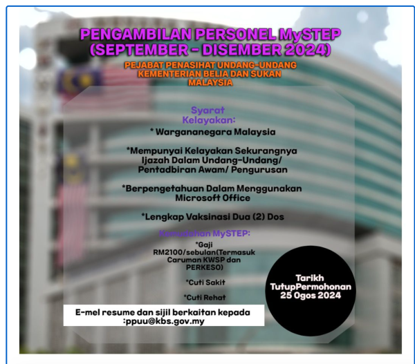 Iklan Kini Jawatan Kosong Kementerian Belia dan Sukan (KBS) Like serta Ikut Facebook Kami, follow Chanel WhatsApp Jawatan Kosong & Telegram Portal SPA9 untuk capaian pantas kekosongan jawatan daripada kami sekarang.