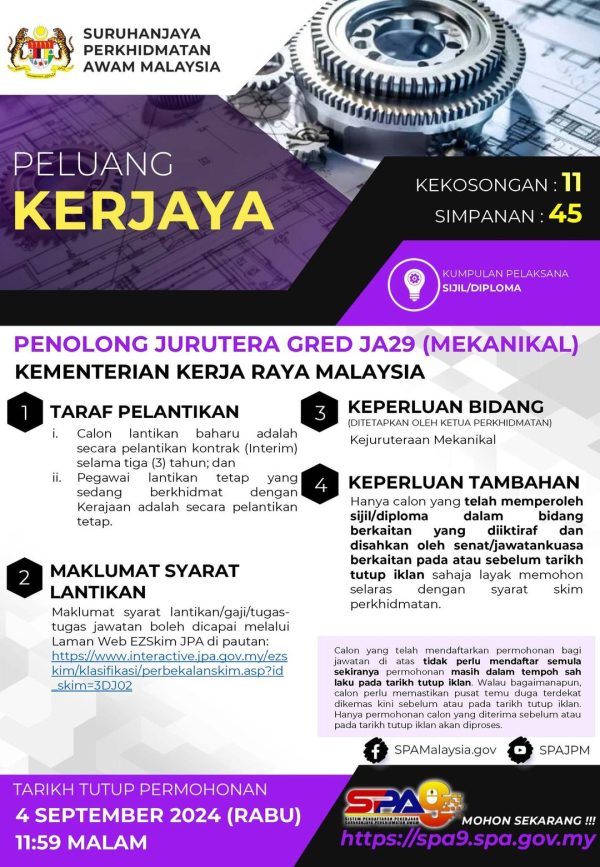 Iklan Kini Jawatan Kosong Kementerian Kerja Raya Malaysia