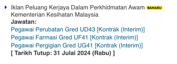 Iklan Kini Jawatan Kosong Kementerian Kesihatan Malaysia (KKM) Like serta Ikut Facebook Kami, follow Chanel WhatsApp Jawatan Kosong & Telegram Portal SPA9 untuk capaian pantas kekosongan jawatan daripada kami sekarang. Klik Jawatan Disini
