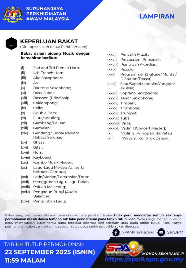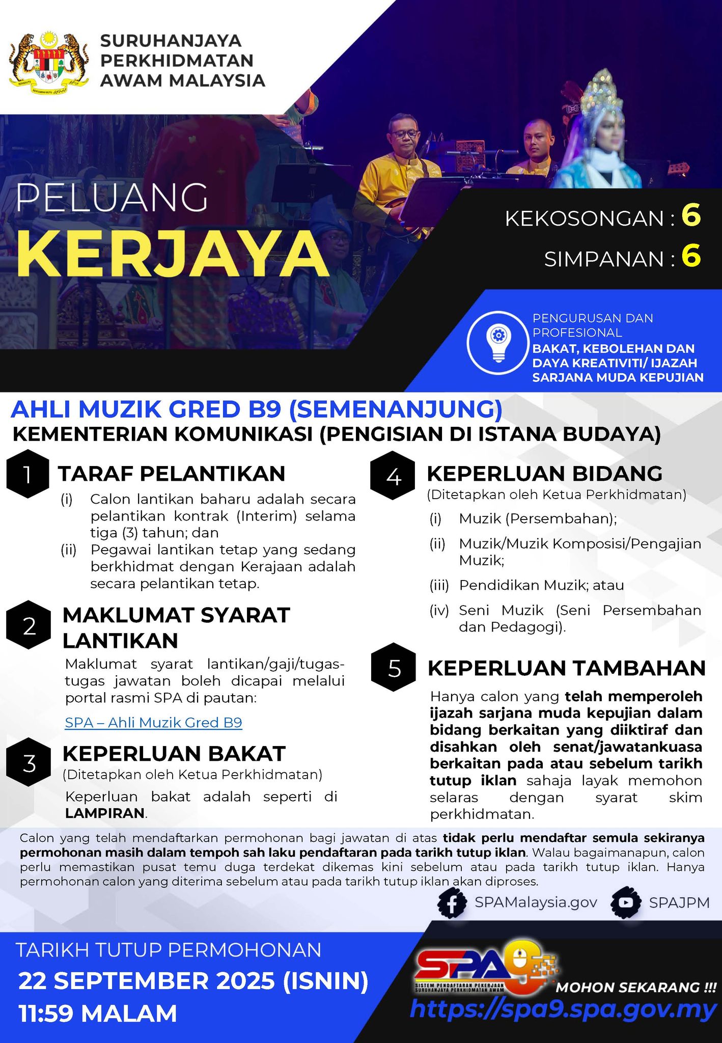 Iklan Kini Jawatan Kosong Kementerian Komunikasi (Pengisian Di Istana Budaya) Like serta Ikut Facebook Kami, follow Chanel WhatsApp Jawatan Kosong & Telegram Portal SPA9 untuk capaian pantas kekosongan jawatan daripada kami sekarang. Klik Iklan Disini