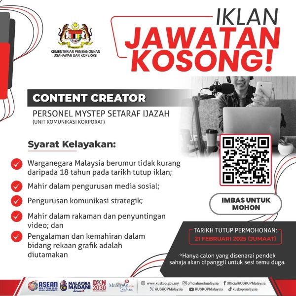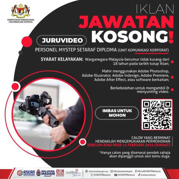 Iklan Kini Jawatan Kosong Kementerian Pembangunan Usahawan Dan Koperasi Klik Jawatan Disini Like serta Ikut Facebook Kami, follow Chanel WhatsApp Jawatan Kosong & Telegram Portal SPA9 untuk capaian pantas kekosongan jawatan daripada kami sekarang.