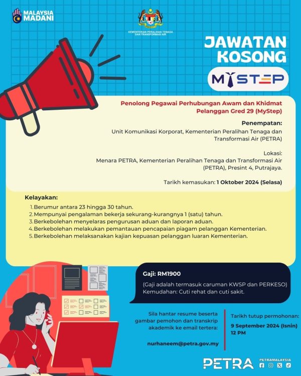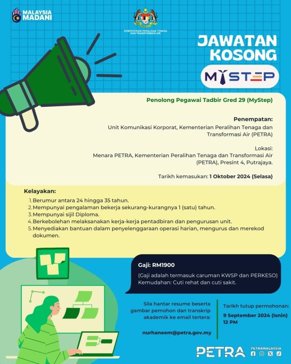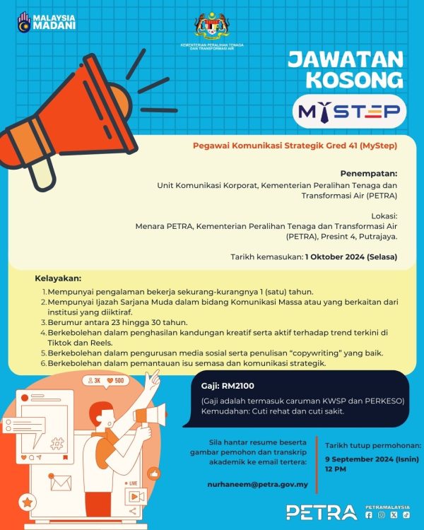 Iklan Kini Jawatan Kosong Kementerian Peralihan Tenaga dan Transformasi Air Like serta Ikut Facebook Kami, follow Chanel WhatsApp Jawatan Kosong & Telegram Portal SPA9 untuk capaian pantas kekosongan jawatan daripada kami sekarang. Klik Jawatan Disini