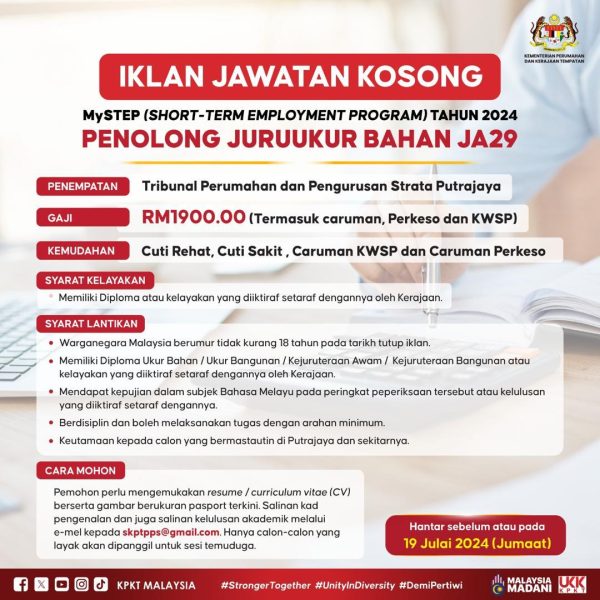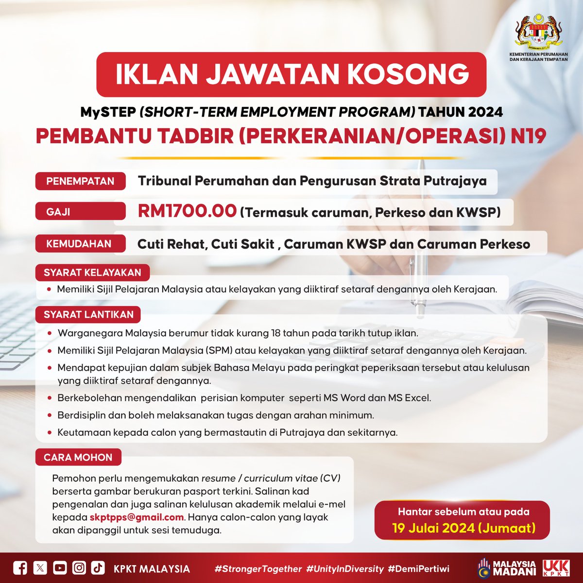 Iklan Kini Jawatan Kosong Kementerian Perumahan Dan Kerajaan Tempatan (KPKT) Like serta Ikut Facebook Kami, follow Chanel WhatsApp Jawatan Kosong & Telegram Portal SPA9 untuk capaian pantas kekosongan jawatan daripada kami sekarang.