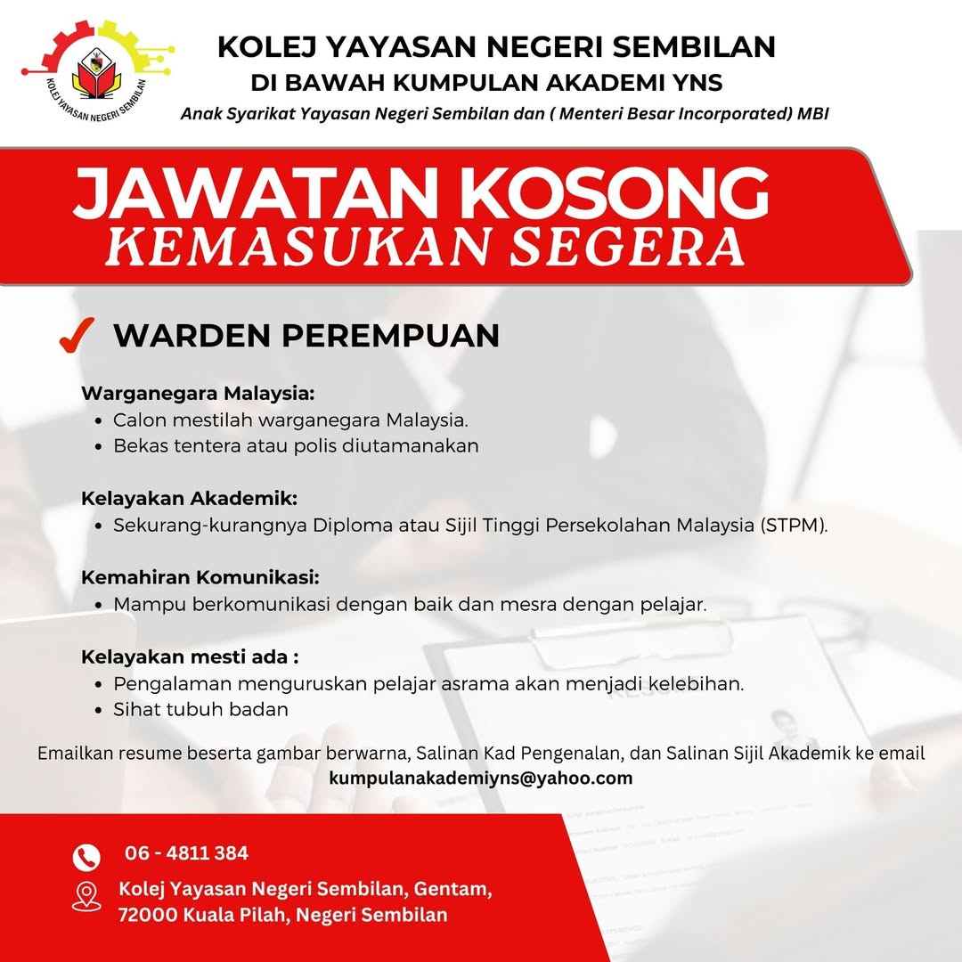 Iklan Kini Jawatan Kosong Kolej Yayasan Negeri Sembilan Like serta Ikut Facebook Kami, follow Chanel WhatsApp Jawatan Kosong & Telegram Portal SPA9 untuk capaian pantas kekosongan jawatan daripada kami sekarang. Klik Iklan Jawatan