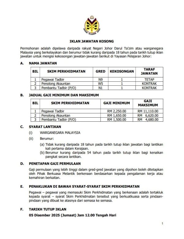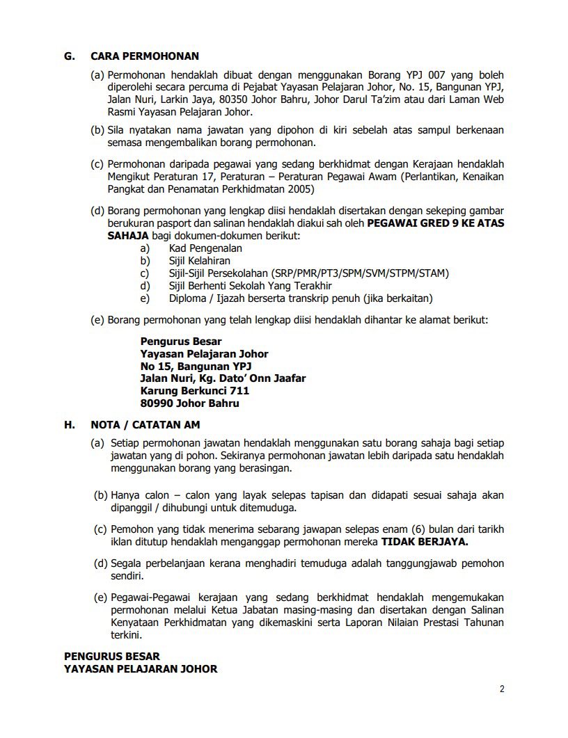 Iklan Kini Jawatan Kosong Kolej Yayasan Pelajaran Johor (KYPJ) Like serta Ikut Facebook Kami, follow Chanel WhatsApp Jawatan Kosong & Telegram Portal SPA9 untuk capaian pantas kekosongan jawatan daripada kami sekarang. Klik Iklan Jawatan