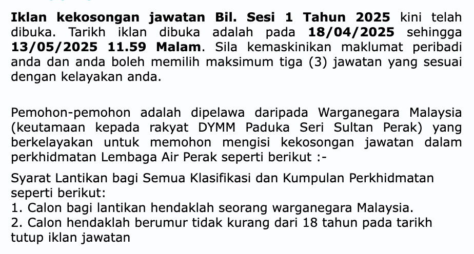 Iklan Kini Jawatan Kosong Lembaga Air Perak Like serta Ikut Facebook Kami, follow Chanel WhatsApp Jawatan Kosong & Telegram Portal SPA9 untuk capaian pantas kekosongan jawatan daripada kami sekarang. Klik Jawatan Disini