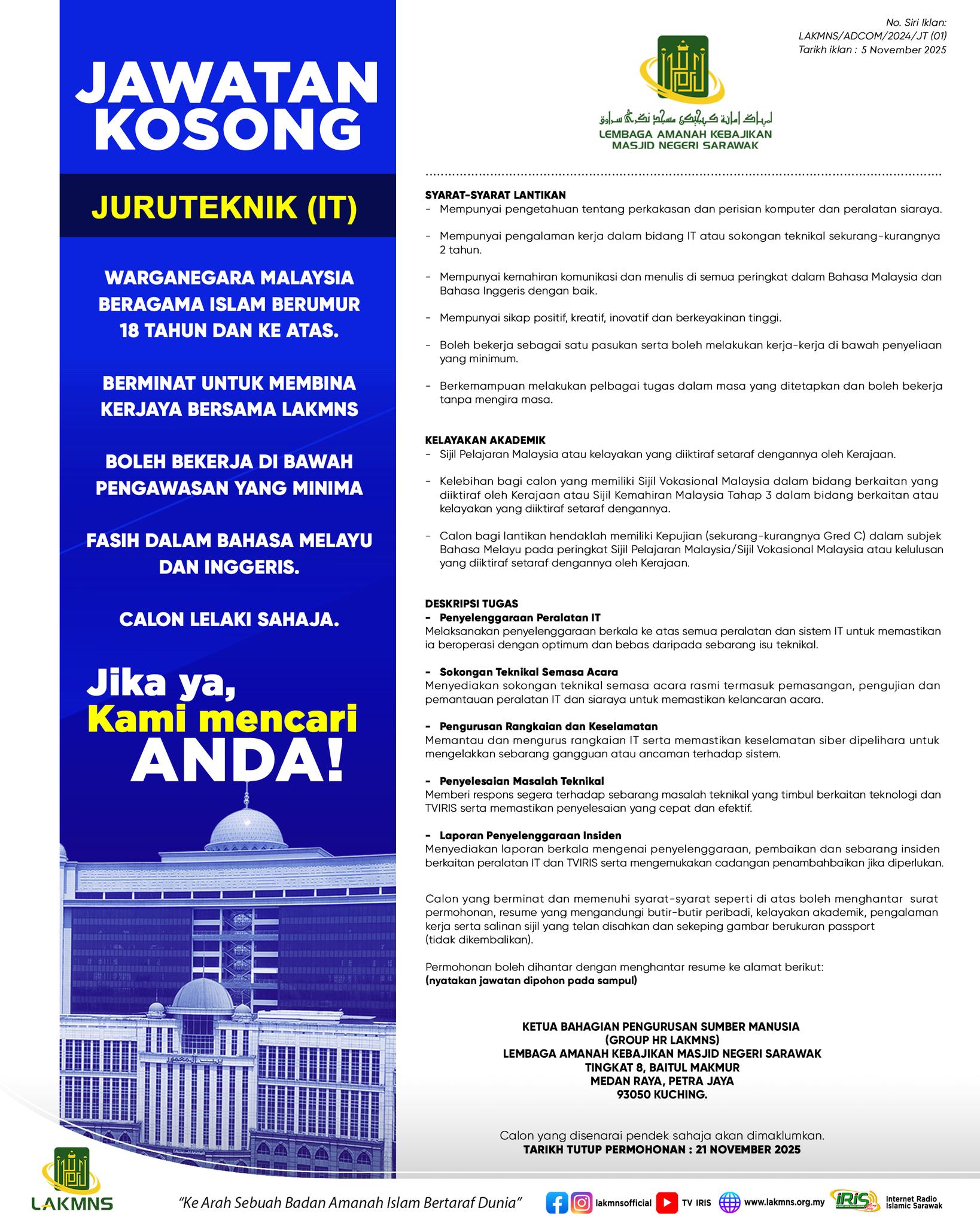 Iklan Kini Jawatan Kosong Lembaga Amanah Kebajikan Masjid Negeri Sarawak Like serta Ikut Facebook Kami, follow Chanel WhatsApp Jawatan Kosong & Telegram Portal SPA9 untuk capaian pantas kekosongan jawatan daripada kami sekarang. Klik Iklan Jawatan