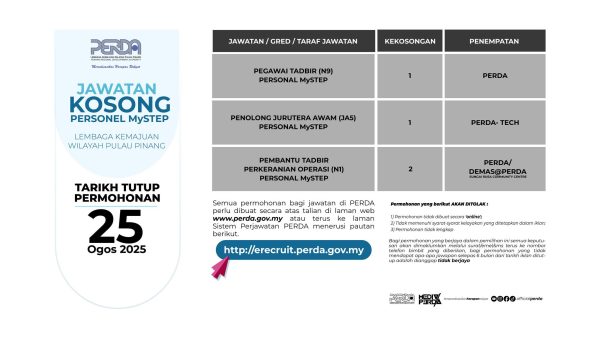 Iklan Kini Jawatan Kosong Lembaga Kemajuan Wilayah Pulau Pinang (PERDA) Like serta Ikut Facebook Kami, follow Chanel WhatsApp Jawatan Kosong & Telegram Portal SPA9 untuk capaian pantas kekosongan jawatan daripada kami sekarang. Klik Iklan Disini